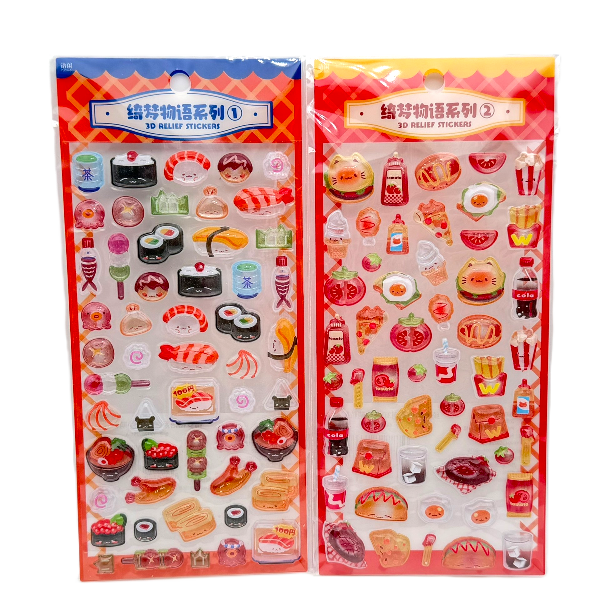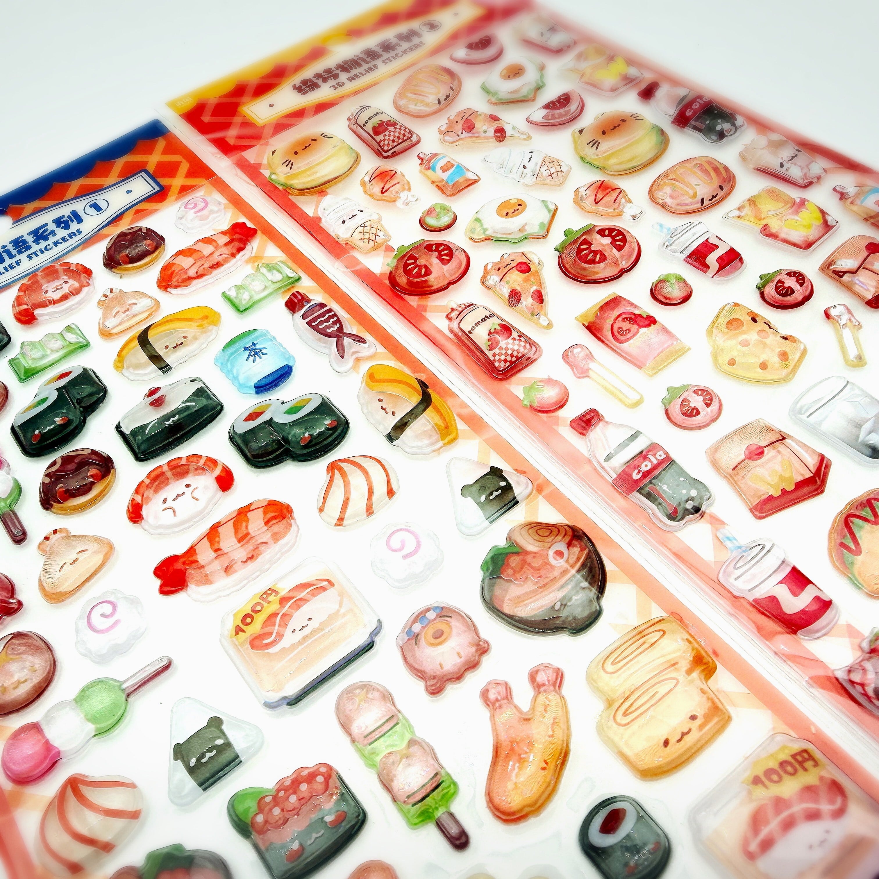 中国製 食べ物シール ・ハンバーガー ・お寿司 しっかり硬めのかわいいシールです☆彡 ※表記は中国語です。